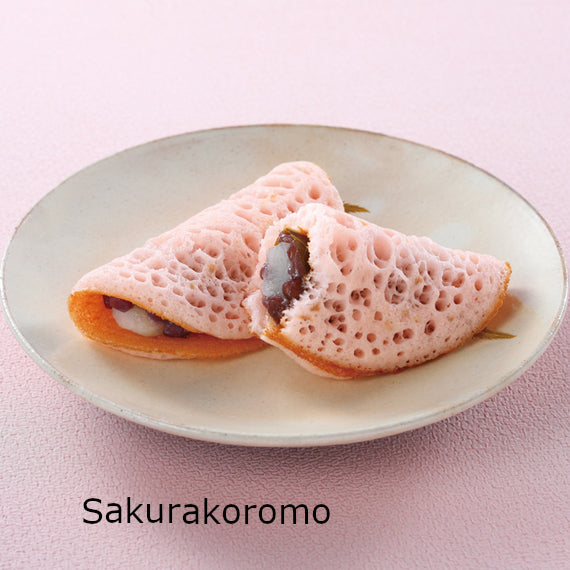 2 x Sakurakoromo: Sweet red bean paste, mochi rice cake, and salted cherry blossom leaf wrapped with Japanese style crepe
