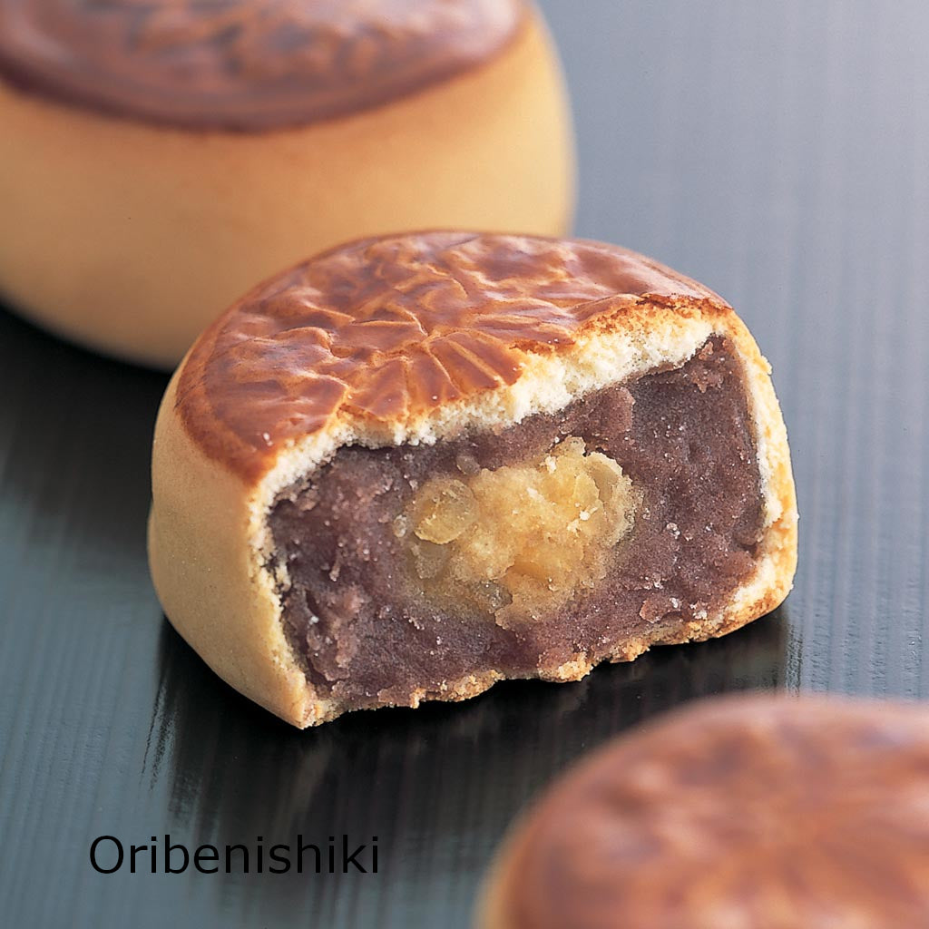 2 x Oribenishiki: Sweet potato paste with chopped chestnuts and sweet red bean paste wrapped in Japanese-style cake