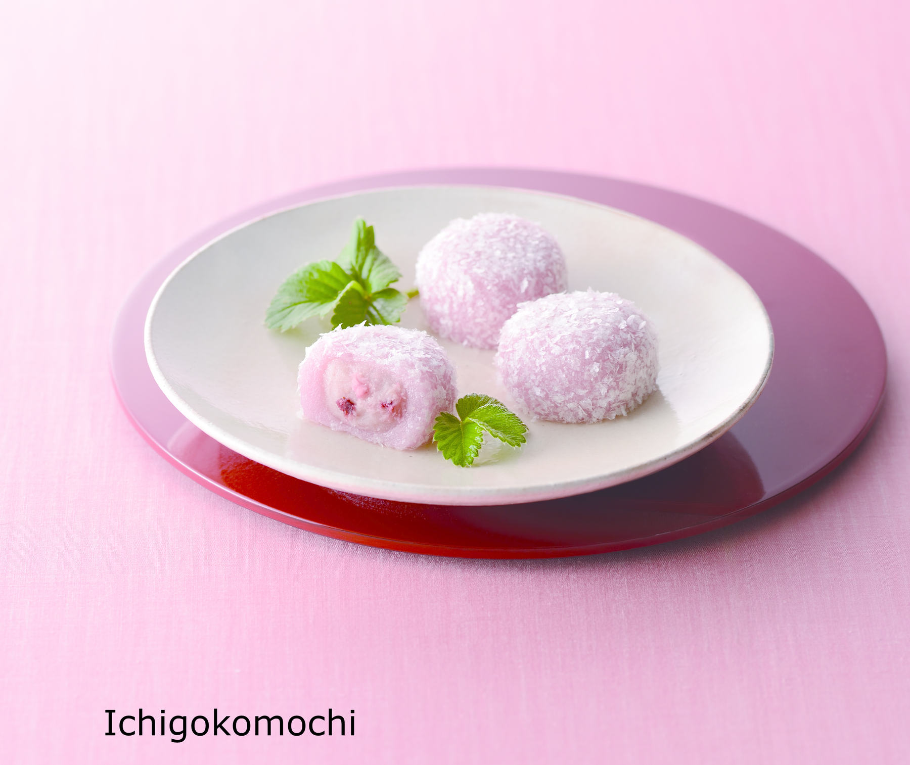 2 x Ichigokomochi: Sweet milky white bean paste with freeze dried strawberries covered with mochi rice cake